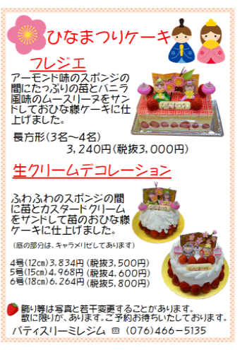 おひな様ケーキ予約受付中